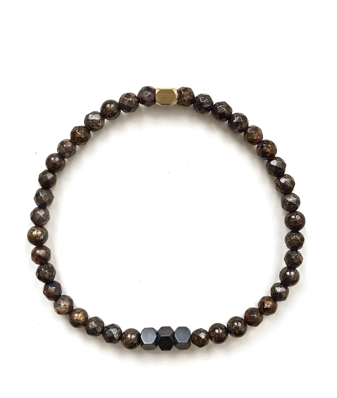 Le brun est le nouveau noir et il est plus séduisant que vous ne le pensez. Restez simple et portez-le en solo. Le n ° 53 est fabriqué à partir de bronzite, d’hématite et de laiton. Taille des perles 4 mm.