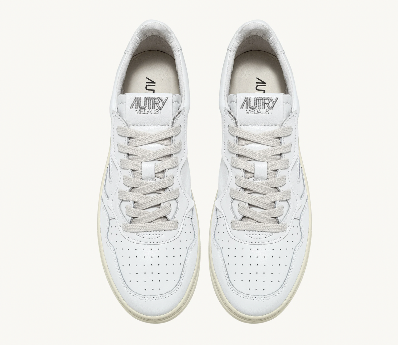 Cette sneaker pour homme est fabriquée en cuir blanc, doux et d’aspect naturel, fini avec des micro-perforations sur la pointe qui offrent une excellente respirabilité. Le détail du talon en cuir blanc est personnalisé avec le logo Autry.