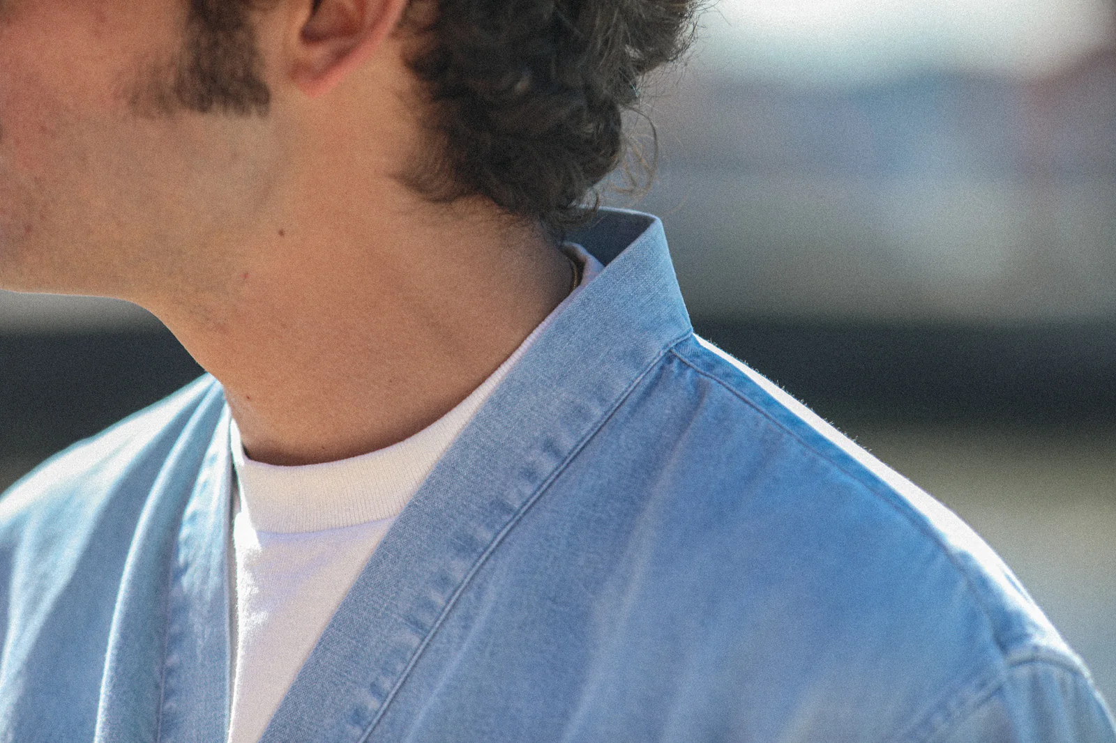 Chemise à manches longues à mi-chemin entre une chemise classique et une veste / cardigan. La coupe est ample et confortable mais les volumes restent toutefois classiques. Le tissu utilisé est un magnifique denim délavé qui se patinera avec le temps.