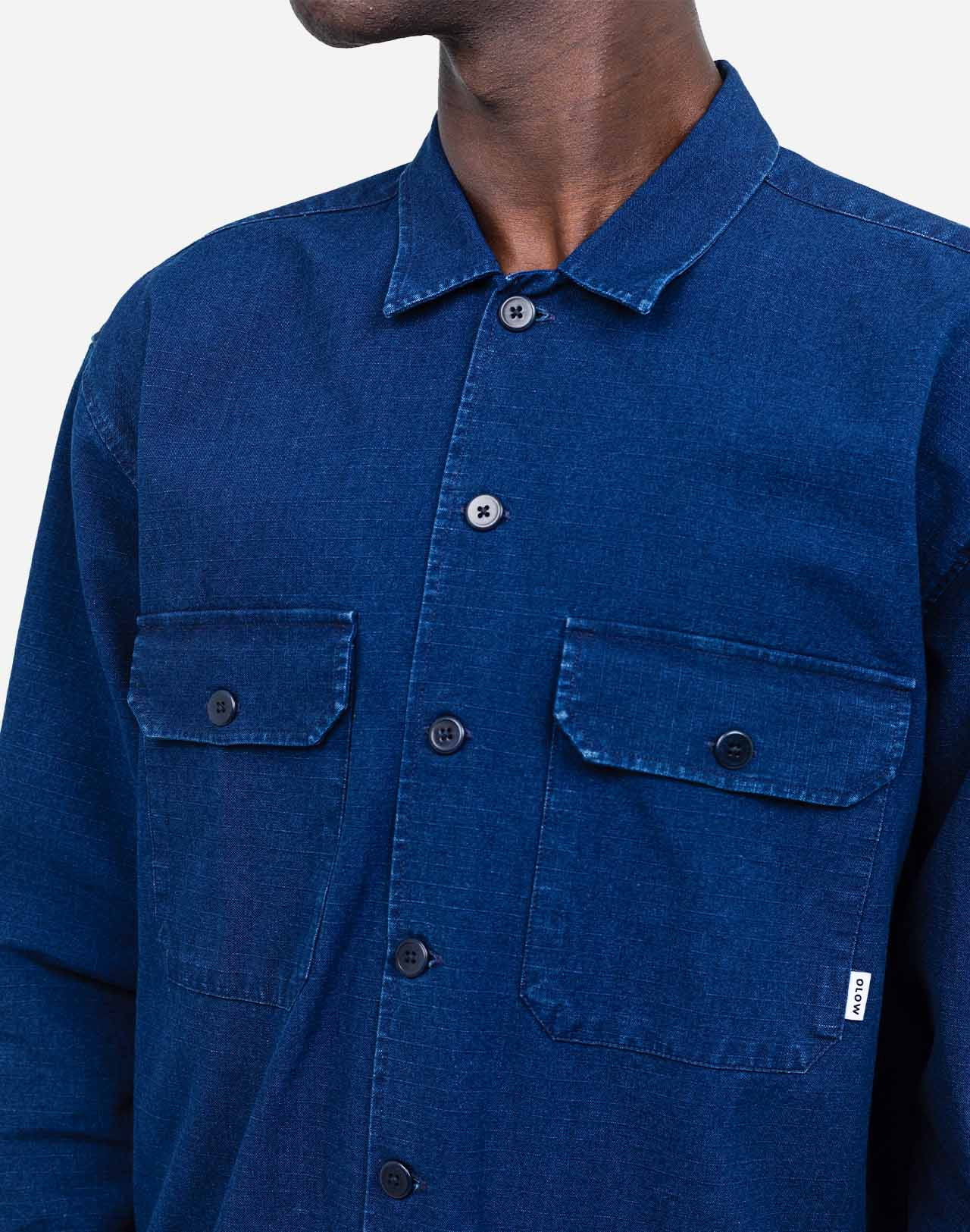 L’incontournable du vestiaire Olow, la chemise (type surchemise) Decré. Ici en tissu ripstop bien robuste, dans un style denim pour un effet workwear et vintage. Ses grandes poches poitrines à rabats et ses manches boutonnées font de cette pièce un intemporel.
