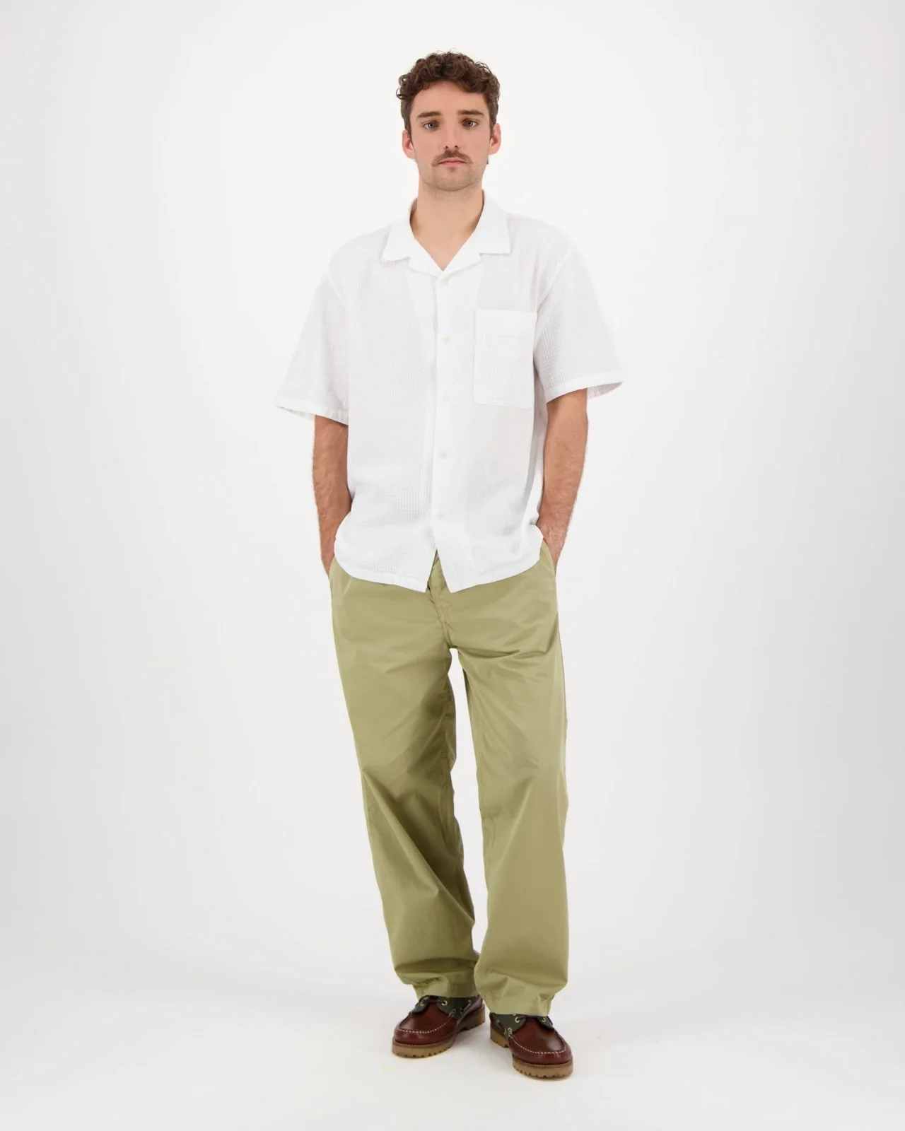 La chemise Solo Fabric Mix est confectionnée dans un tissu uni combinant une texture gaufrée et un léger effet froissé. Ce mélange ludique de textures apporte profondeur et caractère tout en conservant une allure sobre et élégante. Avec sa coupe décontractée et son col cubain, cette chemise offre une silhouette facile à porter au quotidien en été.