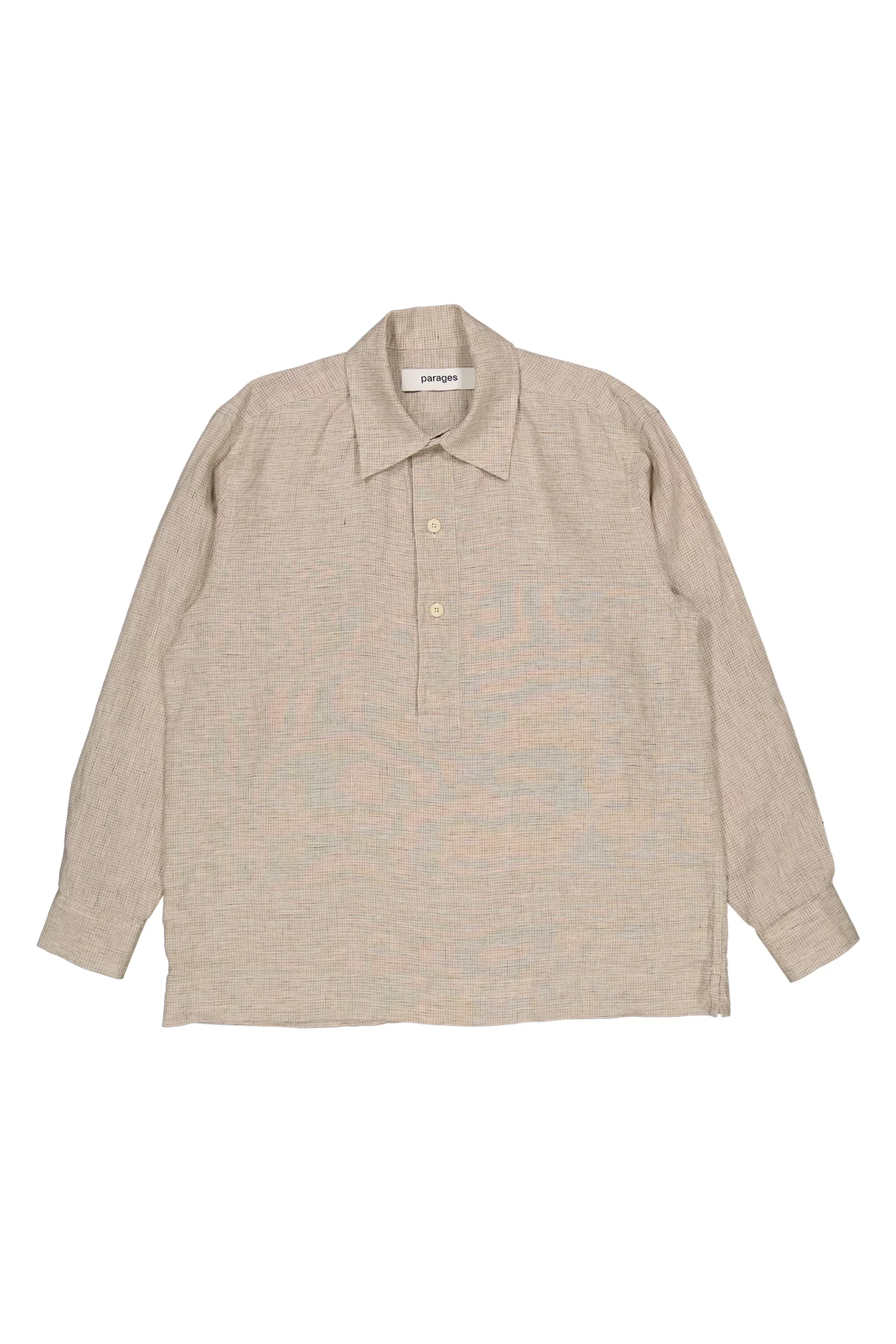 La chemise Tunic est une chemise à enfiler qui se caractérise par sa patte semi-ouverte large et longue et sa coupe très ample, ce qui la rend très appréciable lors des journées de grande chaleur. Elle est confectionnée dans tissu premium 100% lin avec un motif à petits carreaux en camaïeu de beiges. Des boutons de couleur ivoire à vase de caséine de lait (biodégradables) viennent compléter la demi-patte de boutonnage.