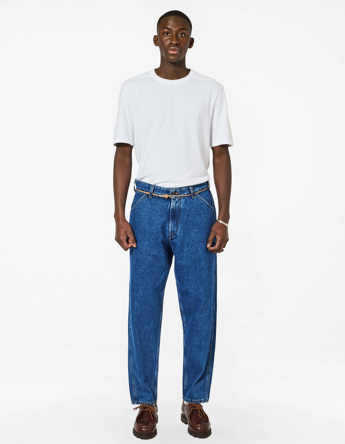 Le jean jabali algo washed associe une coupe moderne à une finition authentique. Confectionné dans un denim délavé au ton profond, il est rehaussé de surpiqûres contrastées qui soulignent les lignes du vêtement. Son cordon en cuir végétal à nœud coulant, signature iconique de Homecore, ajoute une touche artisanale et singulière. Étiquette en cuir synthétique pour un style affirmé et responsable.