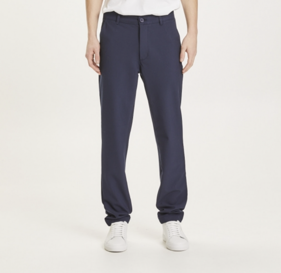 Le pantalon casual Knowledge Cotton Apparel Joe est fabriqué à partir d’un mélange recyclé. Coupe ajustée avec des jambes étroites, des passants de ceinture et des poches arrières.