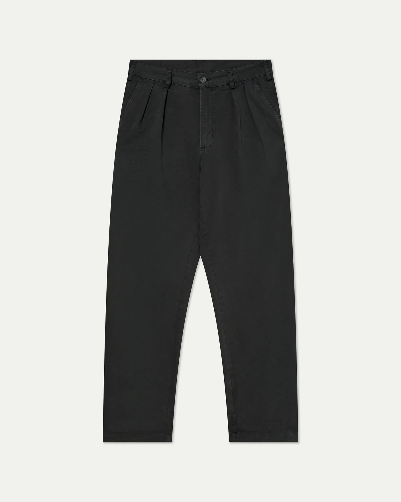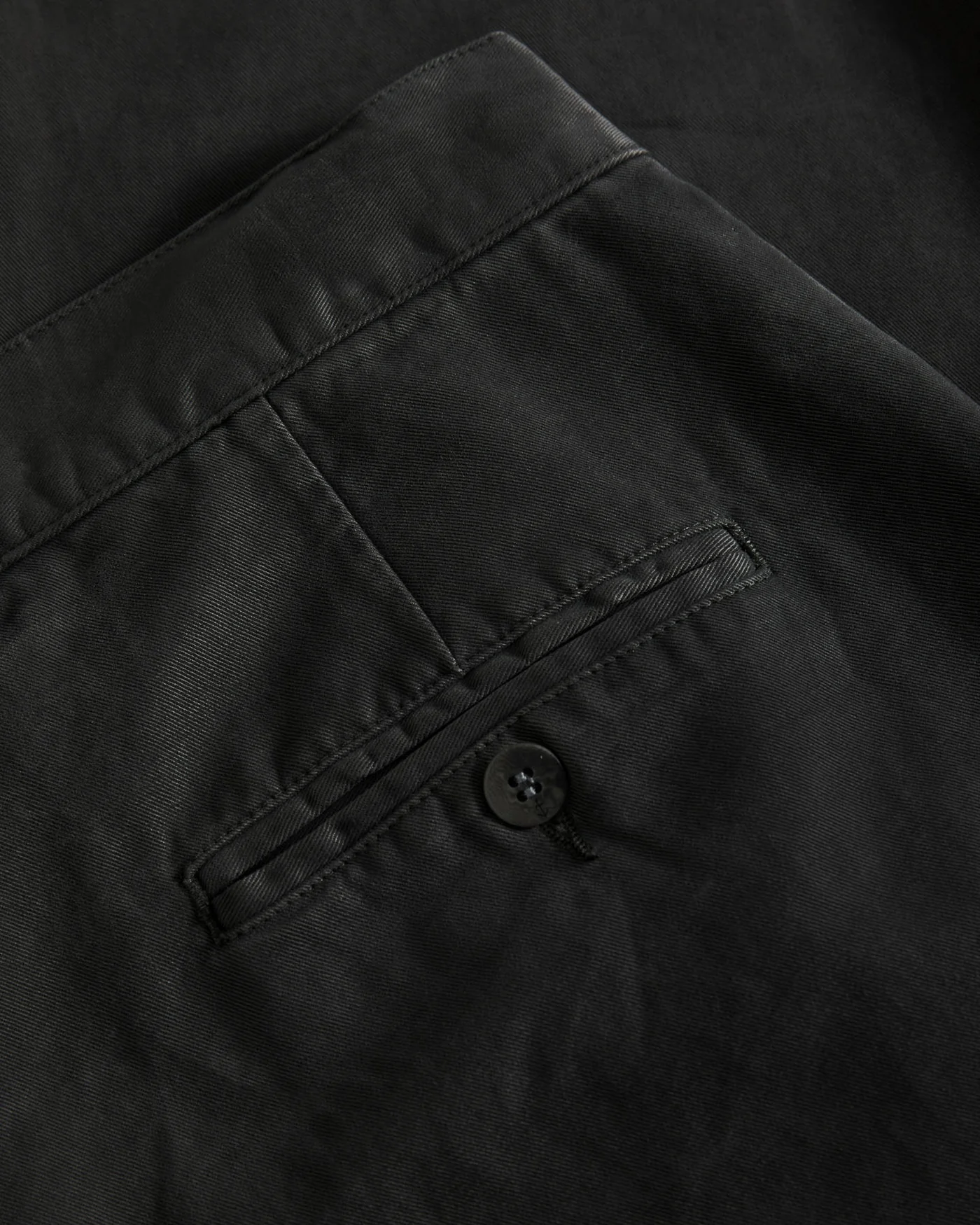 Ce chino à la coupe décontractée présente un devant plissé et des poches boutonnées discrètes à l’arrière.