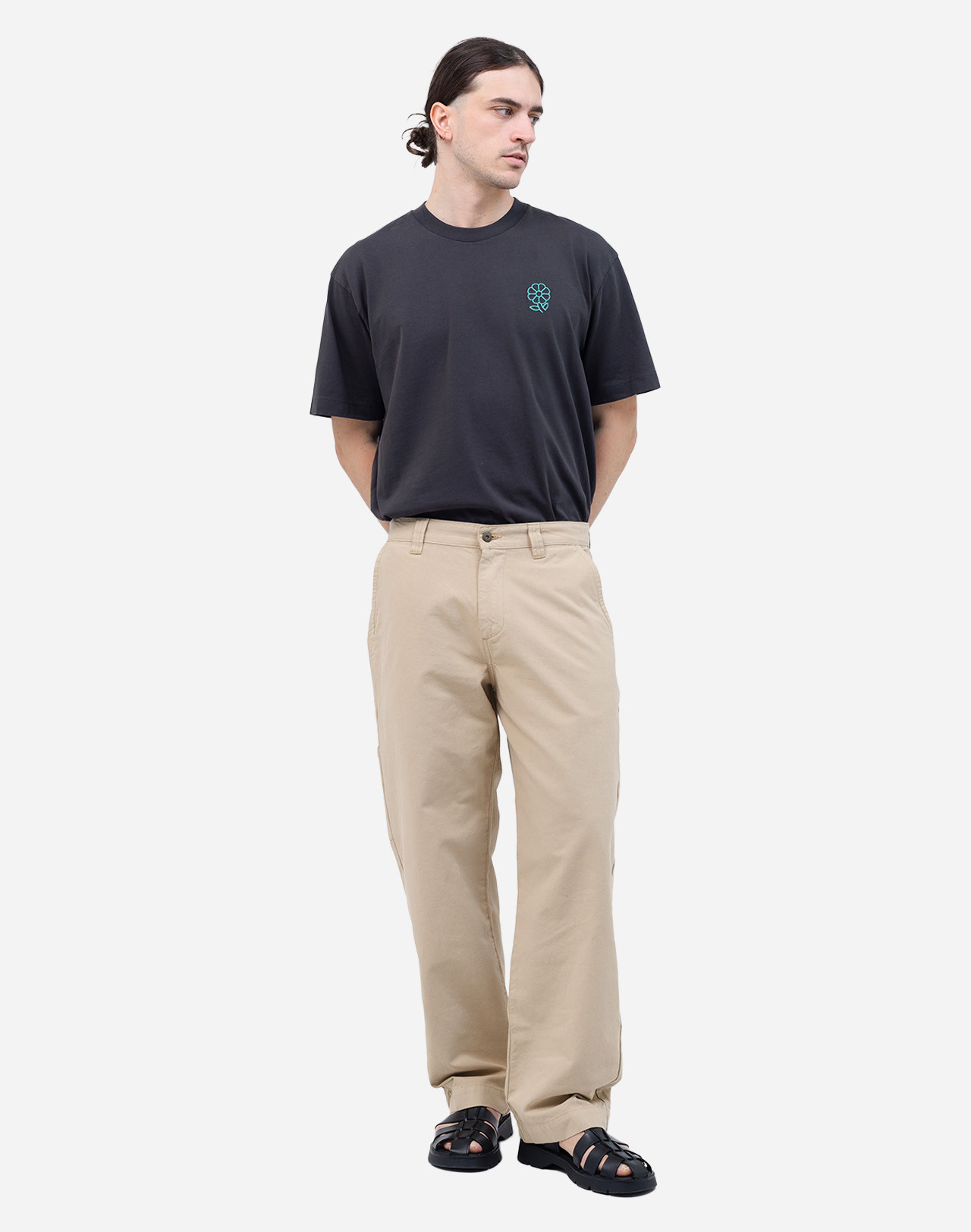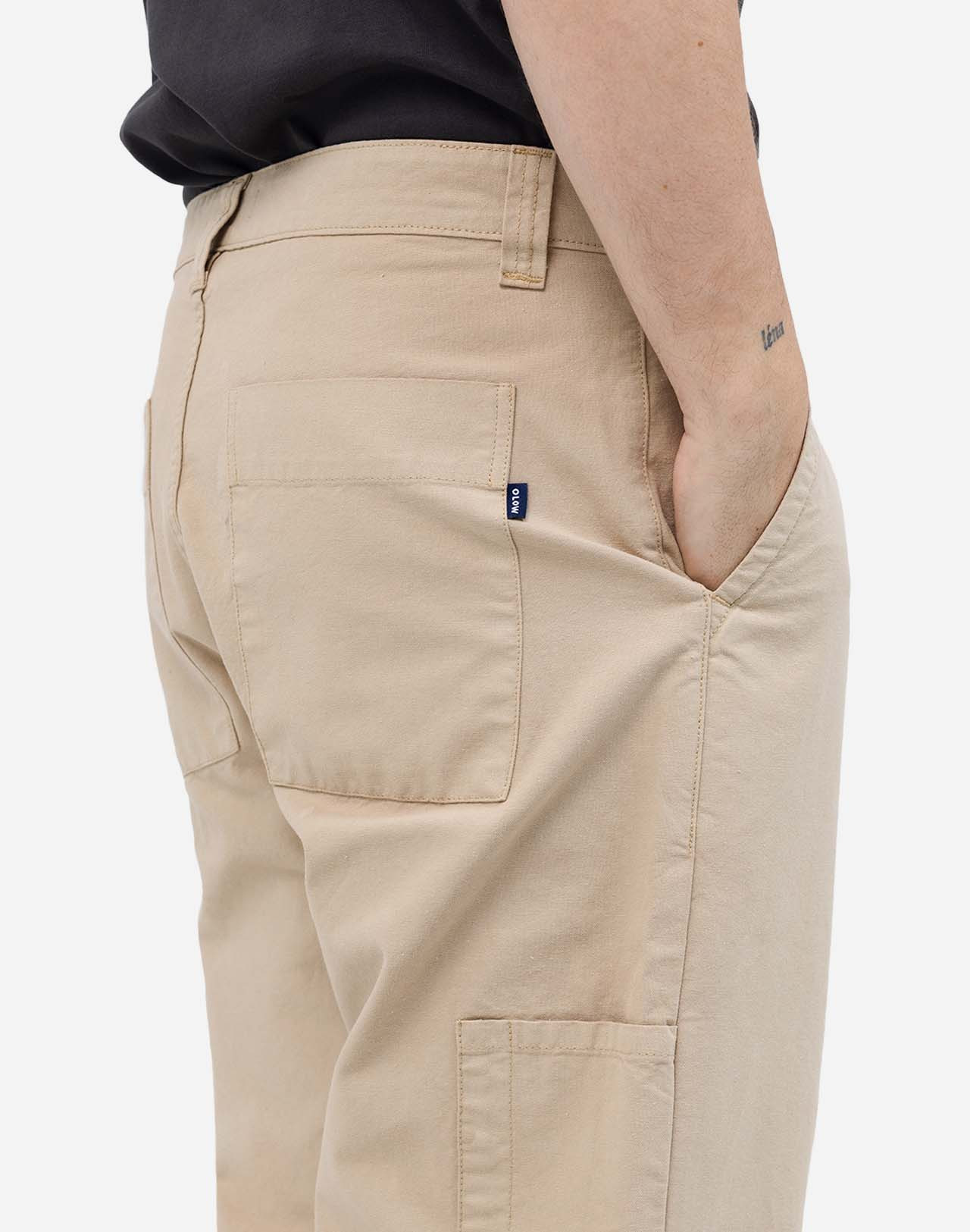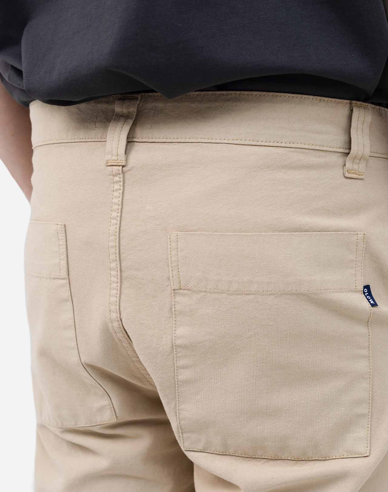 Un pantalon style Workwear, avec un coton tissé en France, robuste et confortable, des poches italiennes, plaquées à l’arrière et sur le côté de la jambe, des passants de ceinture et un zip YKK solide. Un vêtement pensé comme une pièce durable qui traverse les saisons et les années.