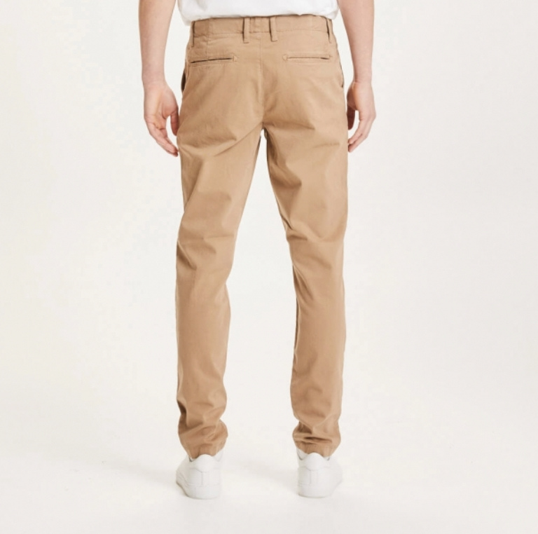 Les chinos Chuck de KnowledgeCotton Apparel sont confectionnés en sergé de coton biologique / élasthanne. Coupe ajustée avec des jambes étroites, des passants de ceinture et des poches arrière.