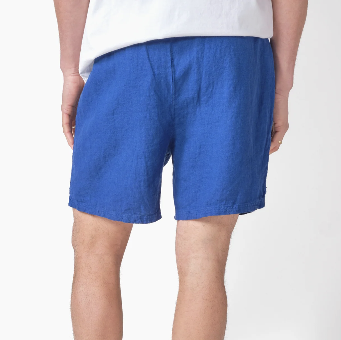 Le short Bertram en lin est un modèle décontracté mi-long, doté de deux poches latérales et d’une taille élastiquée avec cordon de serrage.