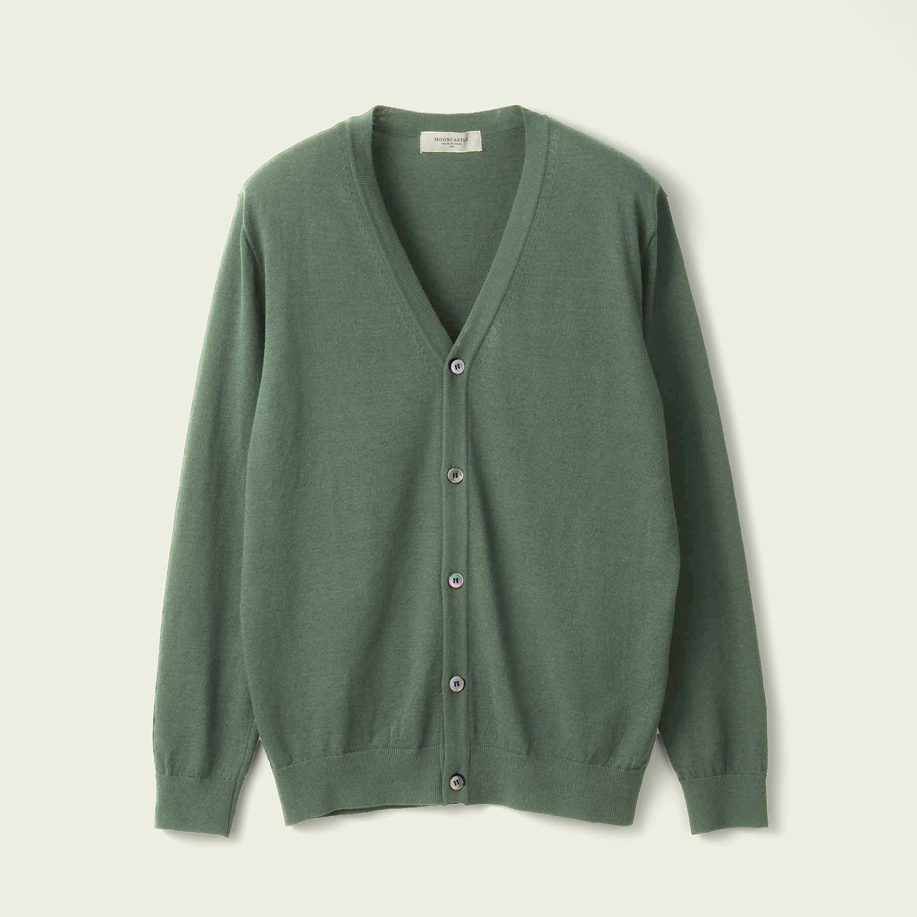 Le tricot est réalisé en point de toile 12 gauge, serré pour un rendu élégant. Quatre brins de coton Ice Cotton fin sont utilisés, ce qui confère au tissu une texture à la fois dense et souple. Le choix optimal des matières premières, allié à un savoir-faire acquis au fil des années, crée cette « fraise » qui fait tout le charme de cette pièce.