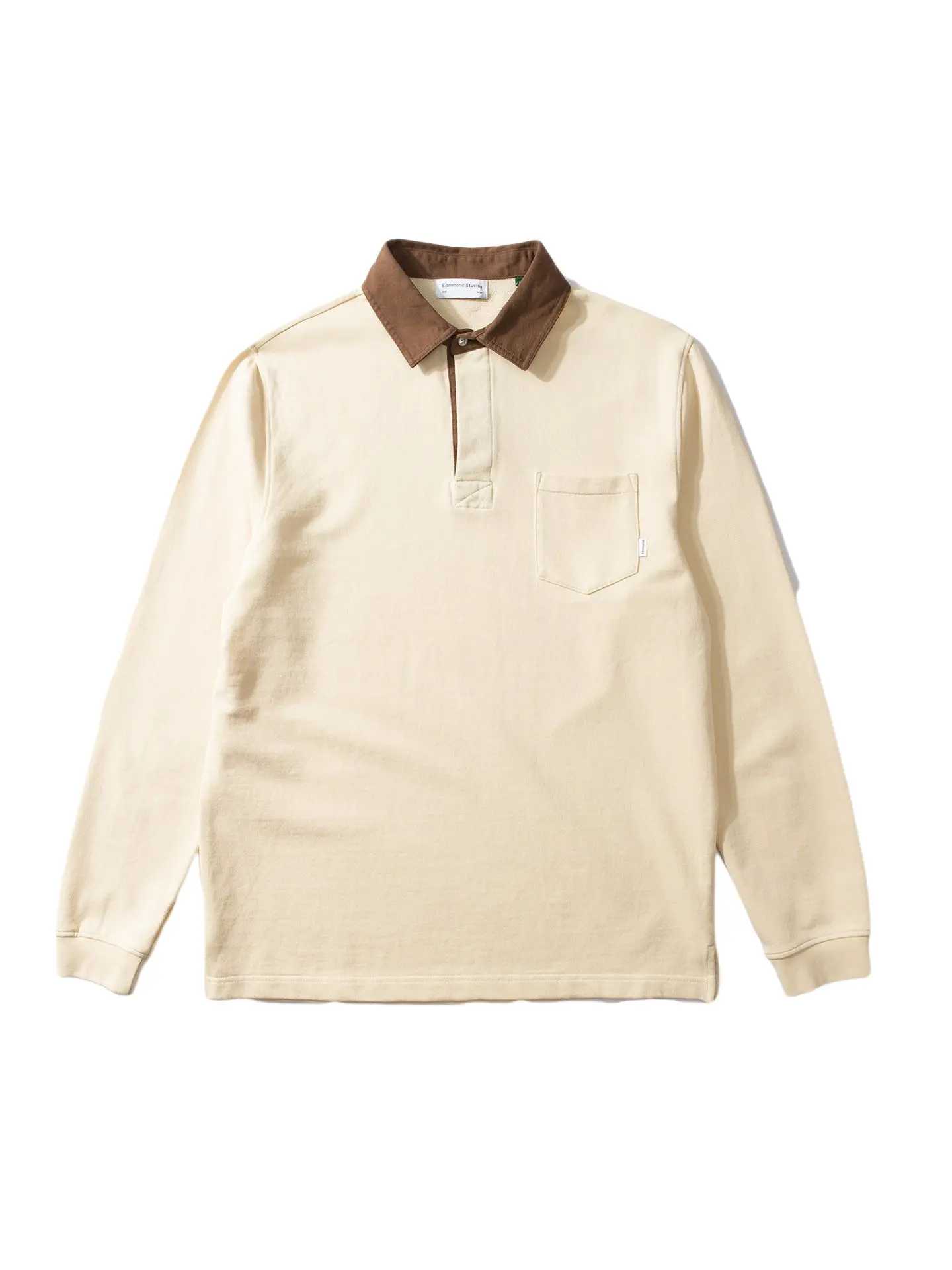 Polo à manches longues en vanille unie, avec côtes rondes et col à revers, de couleur marron.