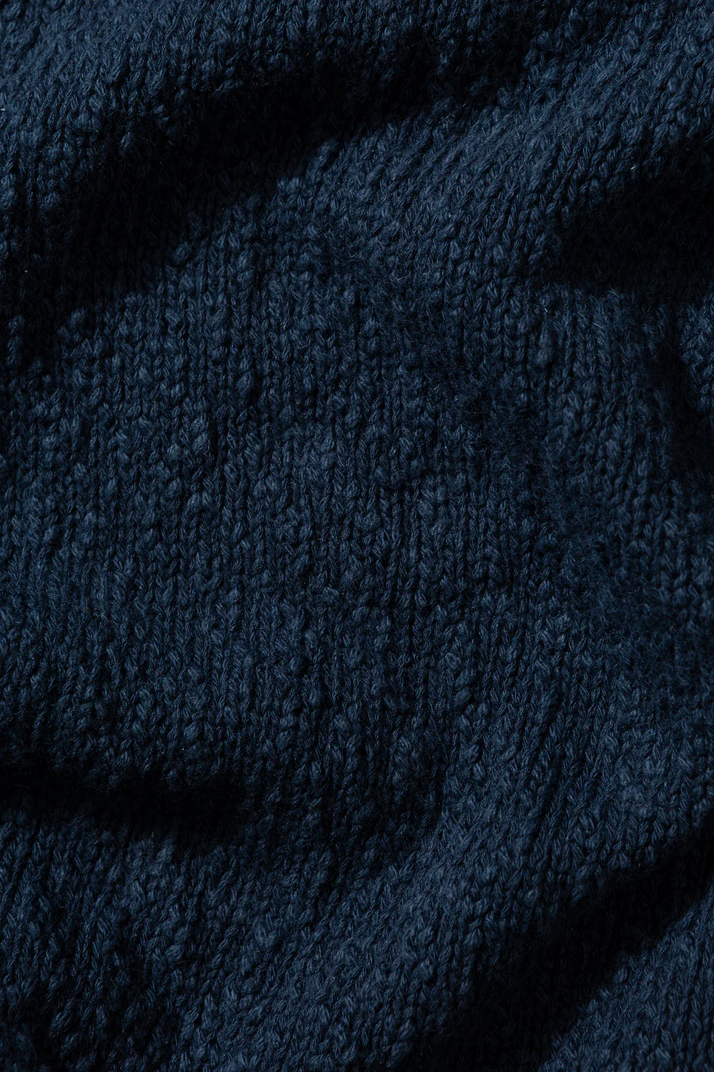 Pull bleu foncé à col rond, en fil fantaisie à effet flammé, coloris classiques.