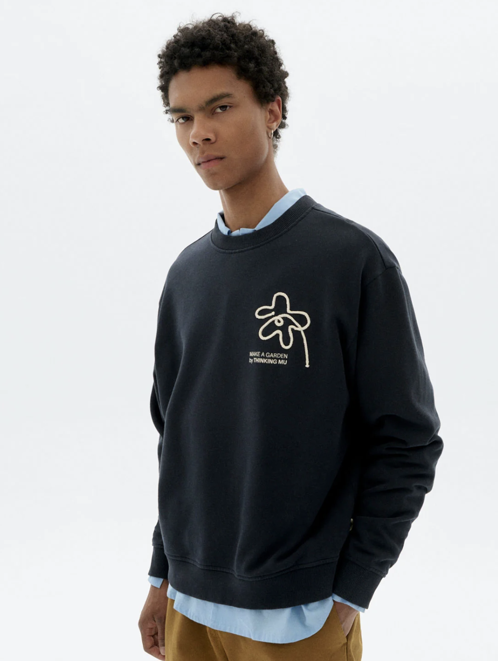 Sweat-shirt brodé à la main Flower Leon en coton biologique.