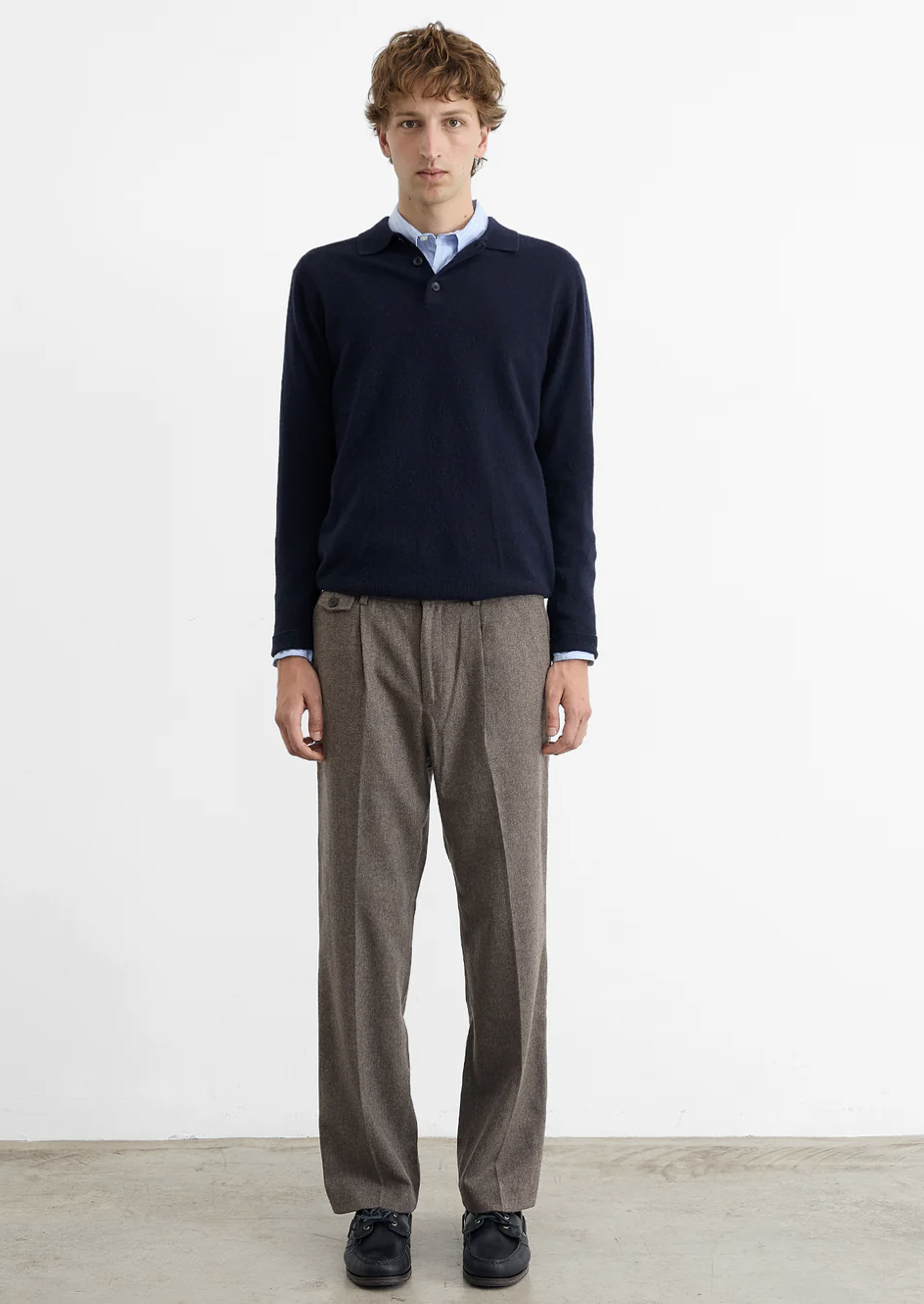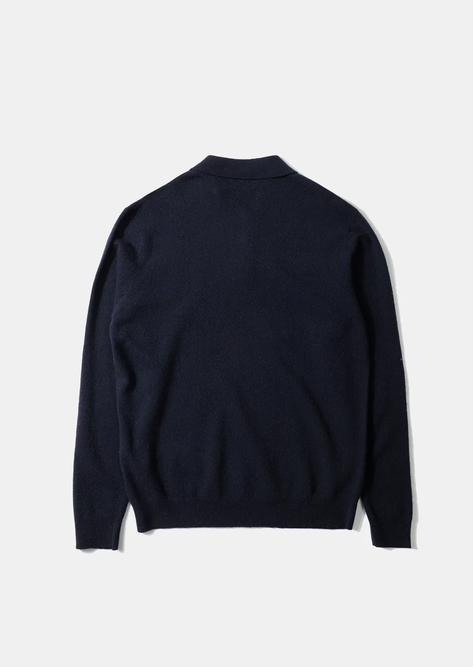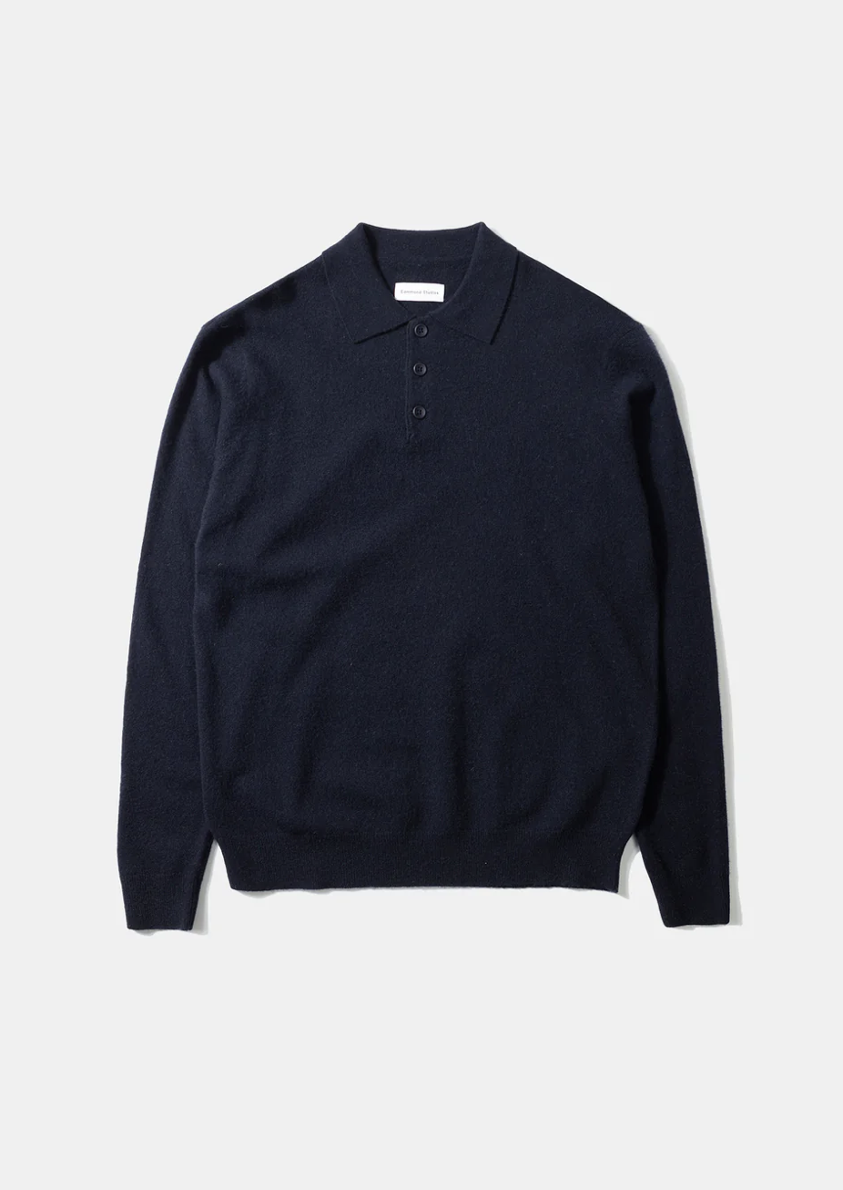 Polo en laine bleu marine avec col à revers et patte de boutonnage assortie jusqu’à la hauteur de la poitrine. Coupe décontractée. Fabriqué au Portugal.