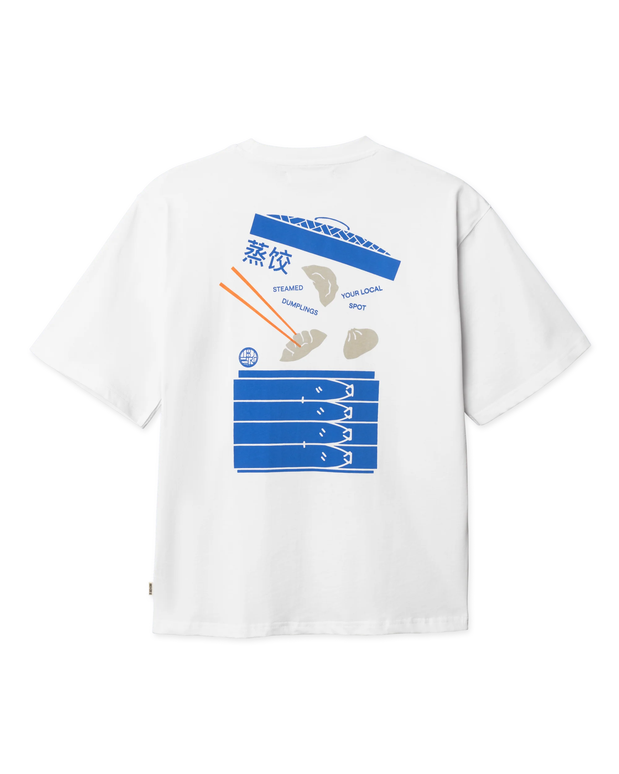 T-shirt graphique orné d'un motif ludique inspiré de la street food et représentant des raviolis empilés.