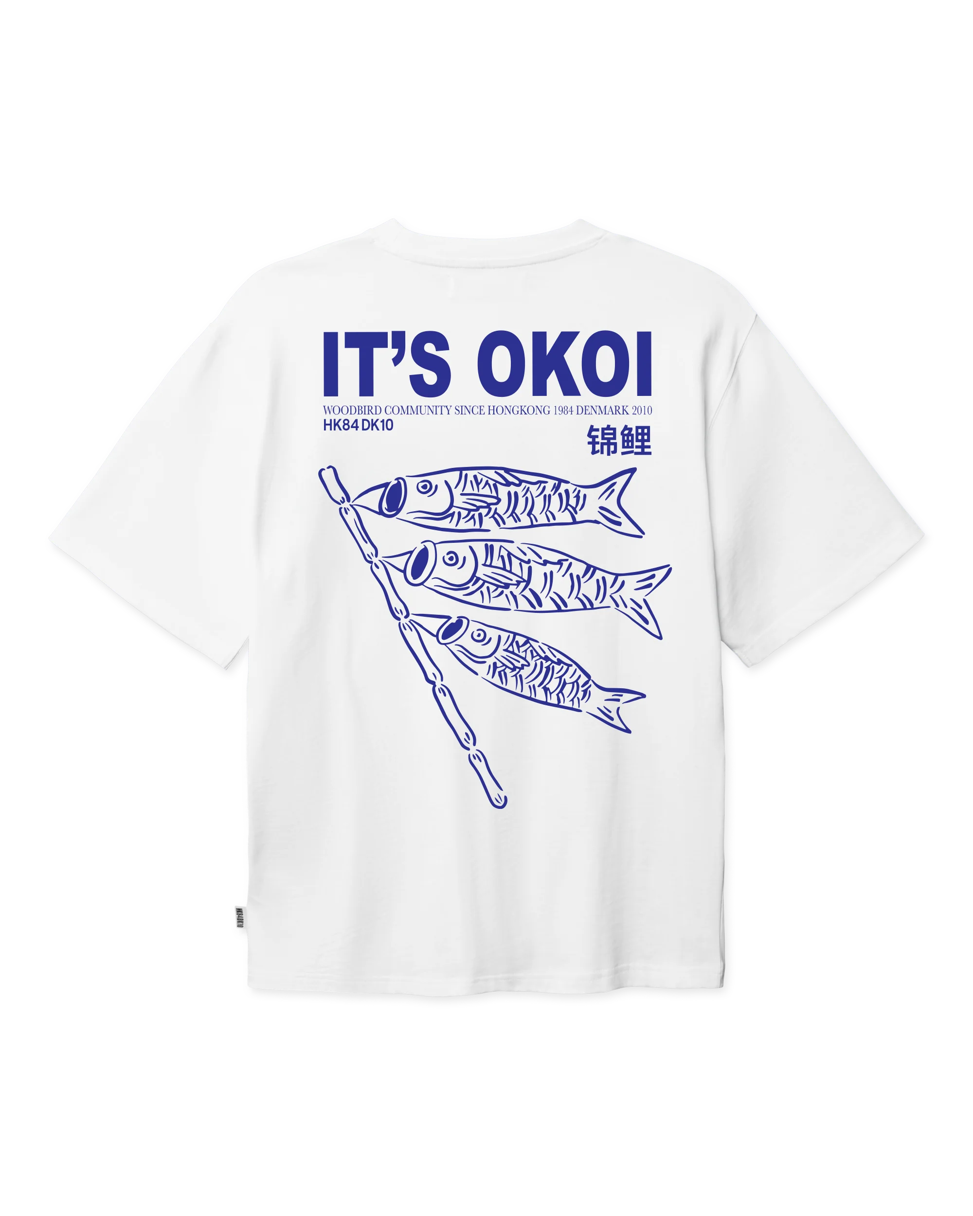 Casual fit tee with a back print featuring stylized koi flags. Pun definitely intended.
