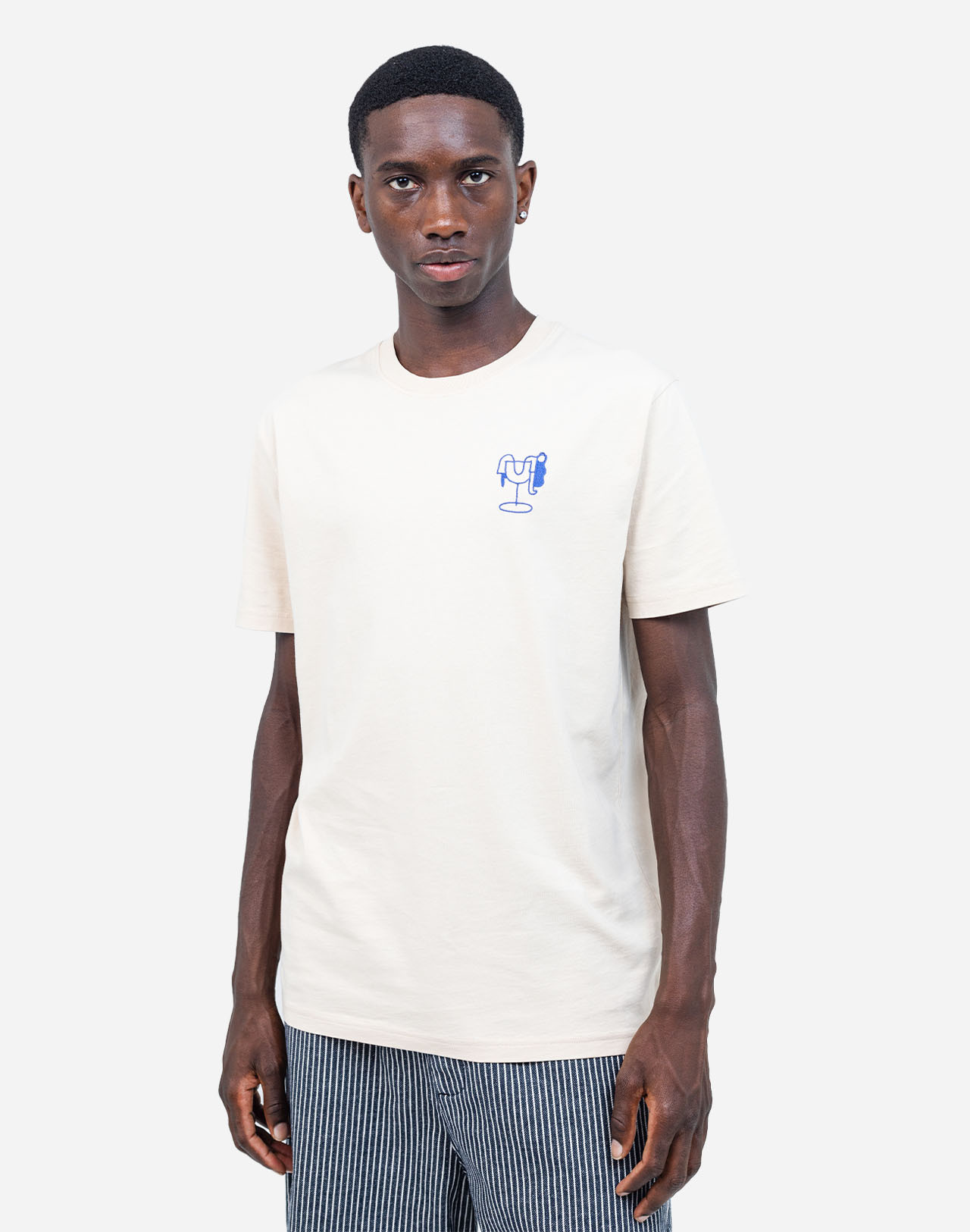 Un t-shirt droit en couleur crème, confectionné en 100 % coton biologique certifié GOTS. Sur la poitrine, une broderie signée Simon Landrein apporte une touche graphique discrète.
