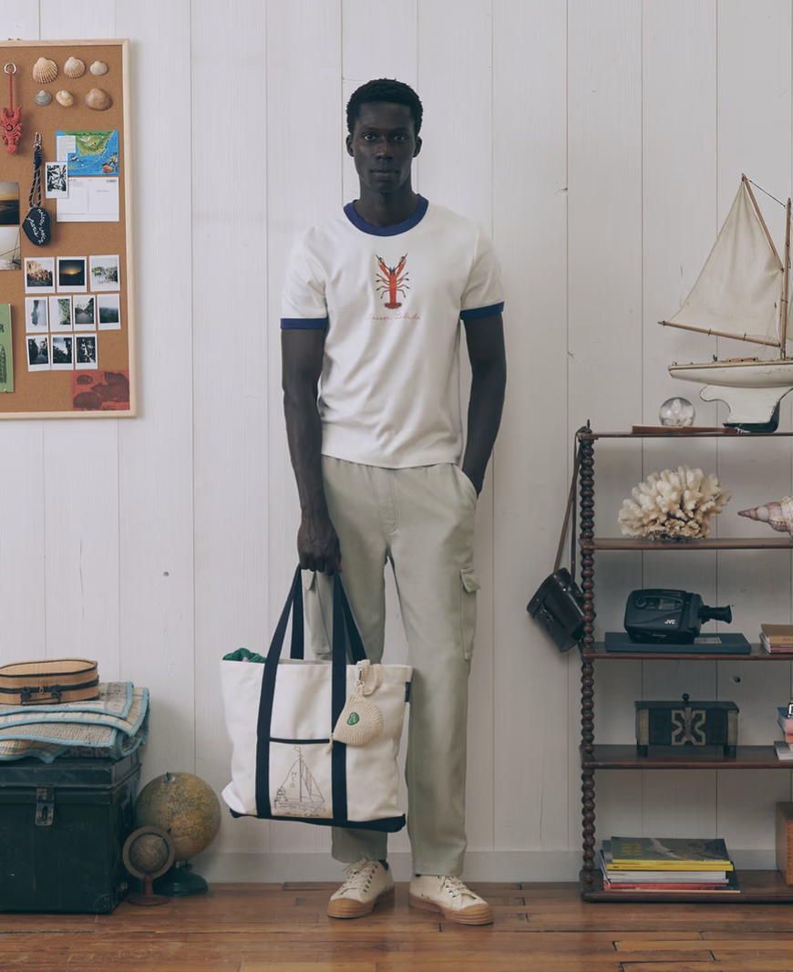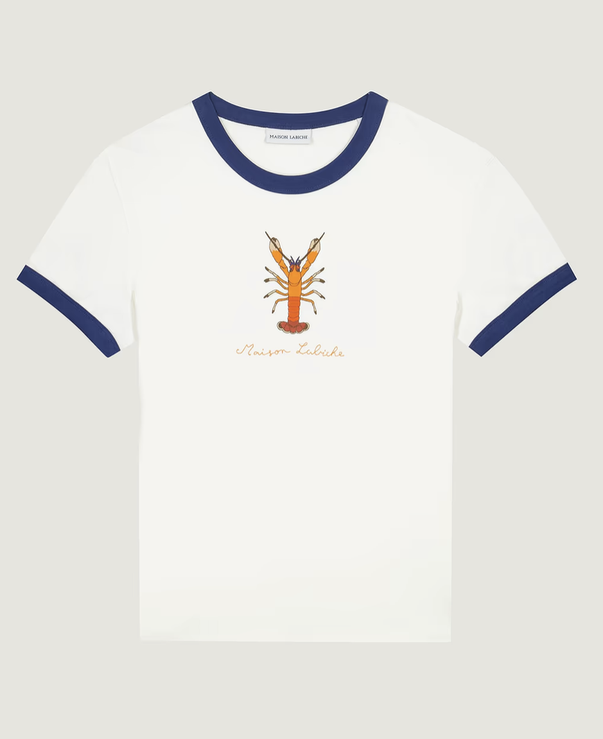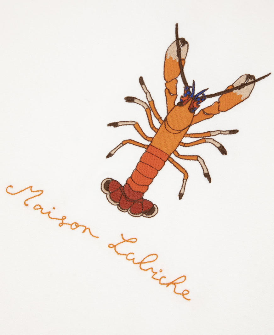 Le tee-shirt a l’inspiration vintage Montherlant homme a une coupe ajustée, l’encolure et le bas de manches finis avec un colletage en bord-côte. La finition du bas du corps est en double aiguille. Sa broderie est pour les lobster lover.