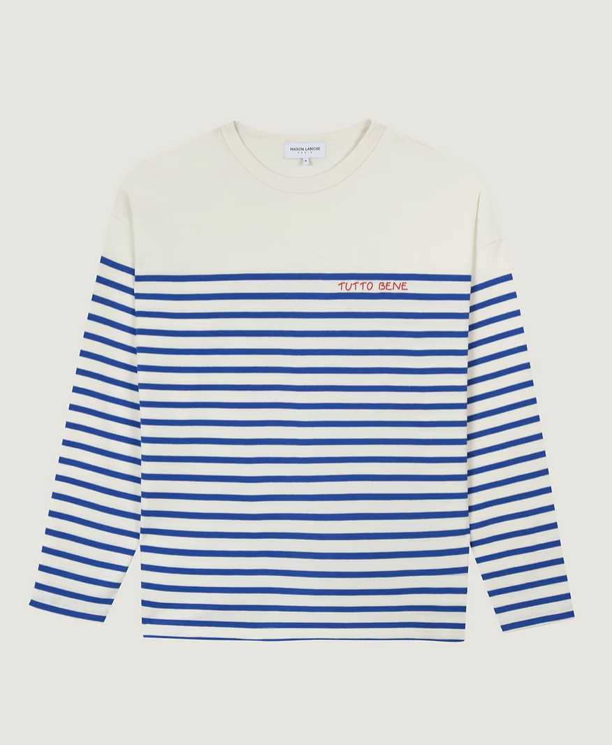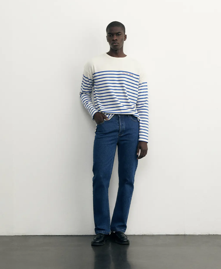 La marinière iconique Montpar homme a une coupe confortable et ample, des emmanchures tombantes, des fentes sur les cotes et un dos légèrement plus long. Elle est réalisée dans une maille assez épaisse et tres confortable. Sa broderie s’adresse à ceux qui s’adaptent et vivent avec simplicité.