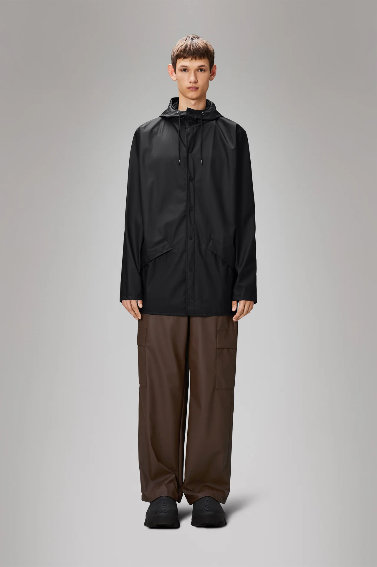 Cette veste imperméable est confectionnée dans le tissu PU emblématique de Rains et présente des coutures soudées par ultrasons.