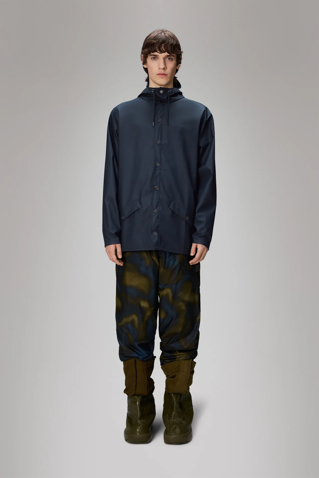 La veste RAINS est une veste de pluie unisexe toujours contemporaine offrant une fonctionnalité élevée dans une silhouette minimale. Les caractéristiques comprennent des poches à rabat inclinées à double soudure, des poignets réglables et un ourlet en queue de poisson.